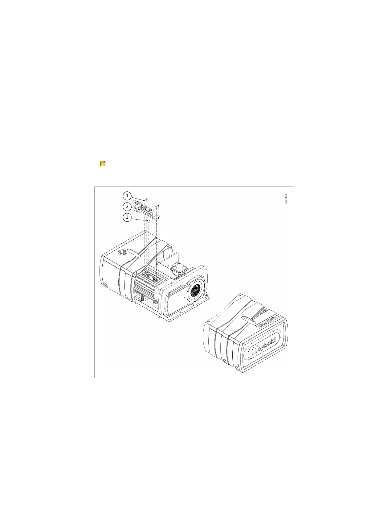 1. Remove the 4xM6 screws (1) of the blow off cover (2).