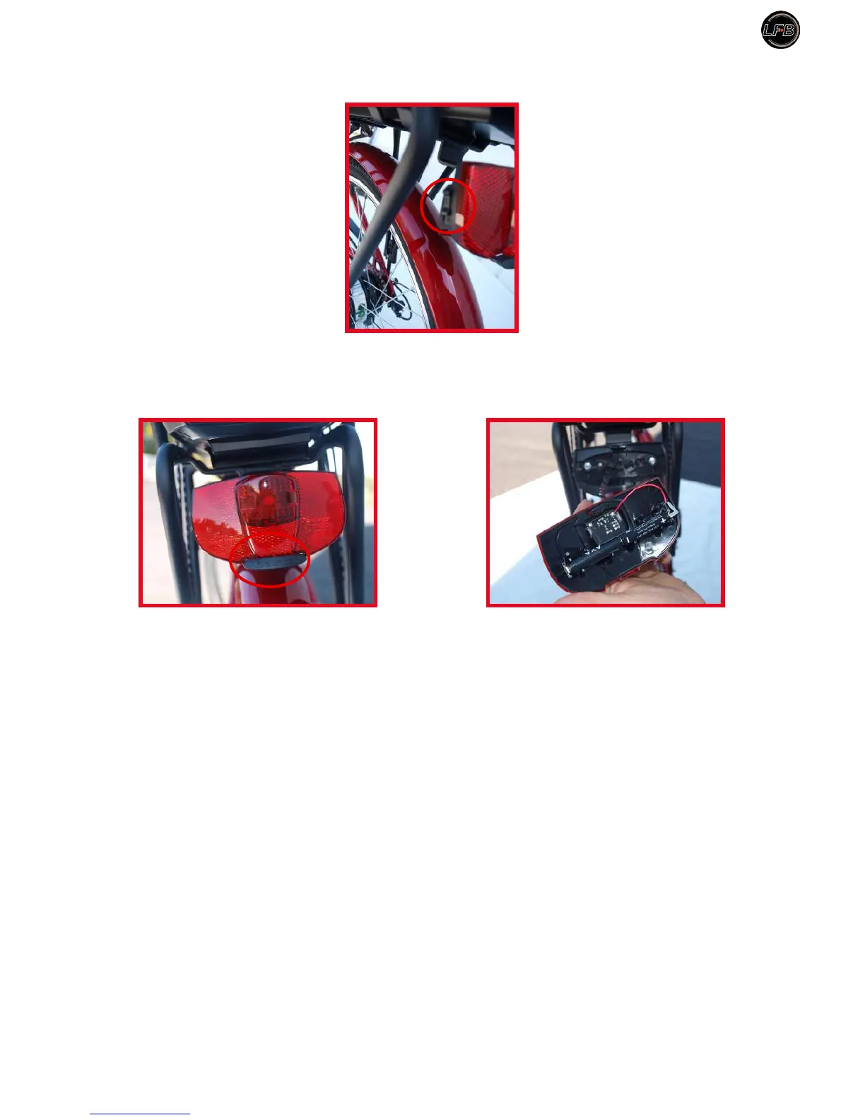 v A red rear lamp with dry battery (2 batteries AAA) that light by the switch on the left side: