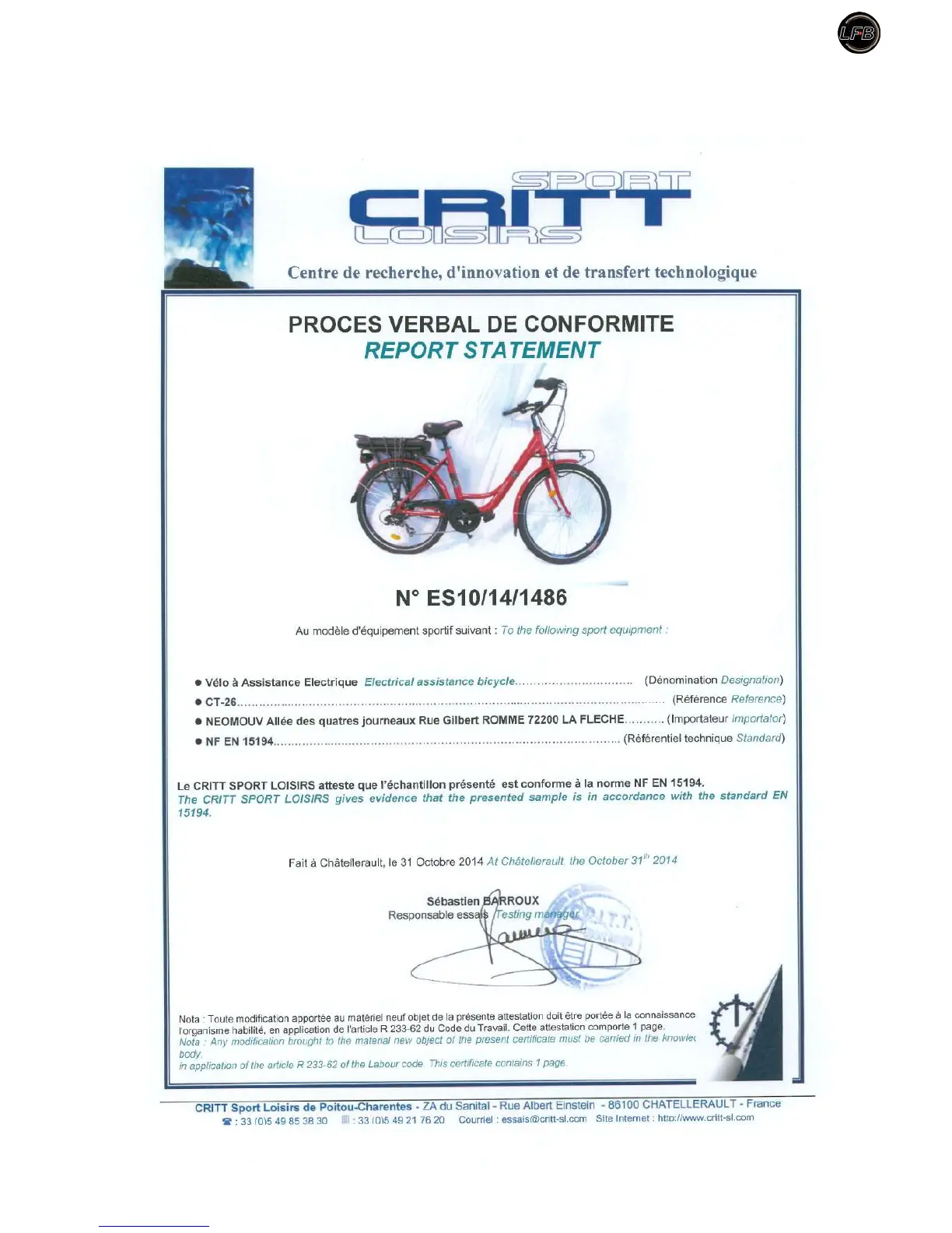 LF-B CT26-15 - 12 Conformity Certificate