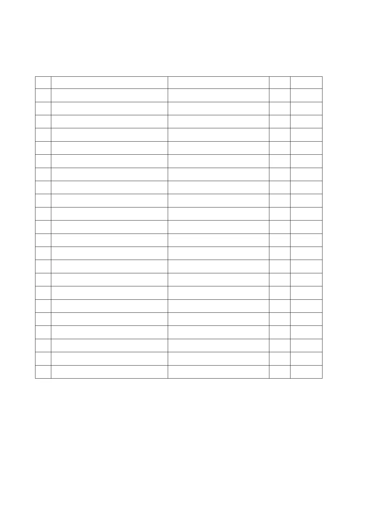 No. Name Specification Unit Quantity