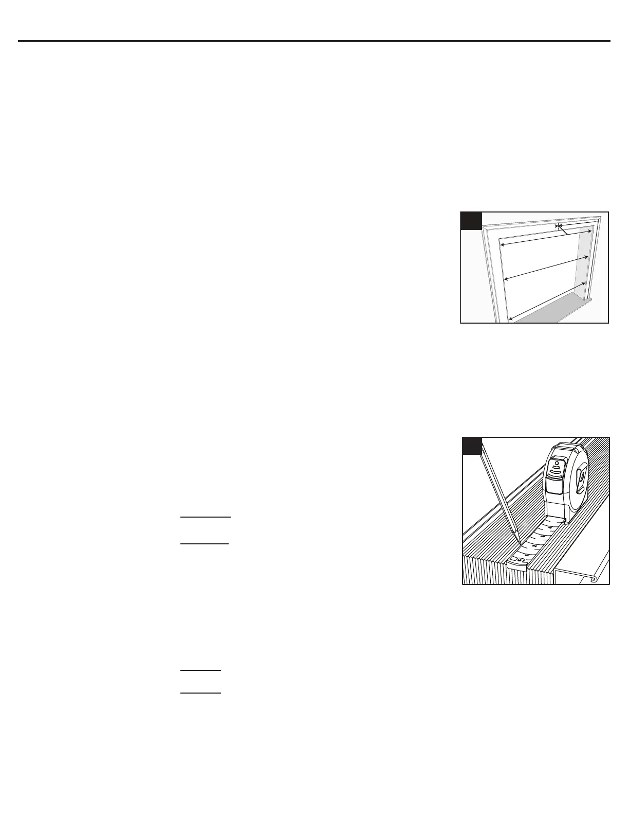 middle and bottom of opening. Using smallest of 3 measurements, subtract 1/2 inch to allow for mounting