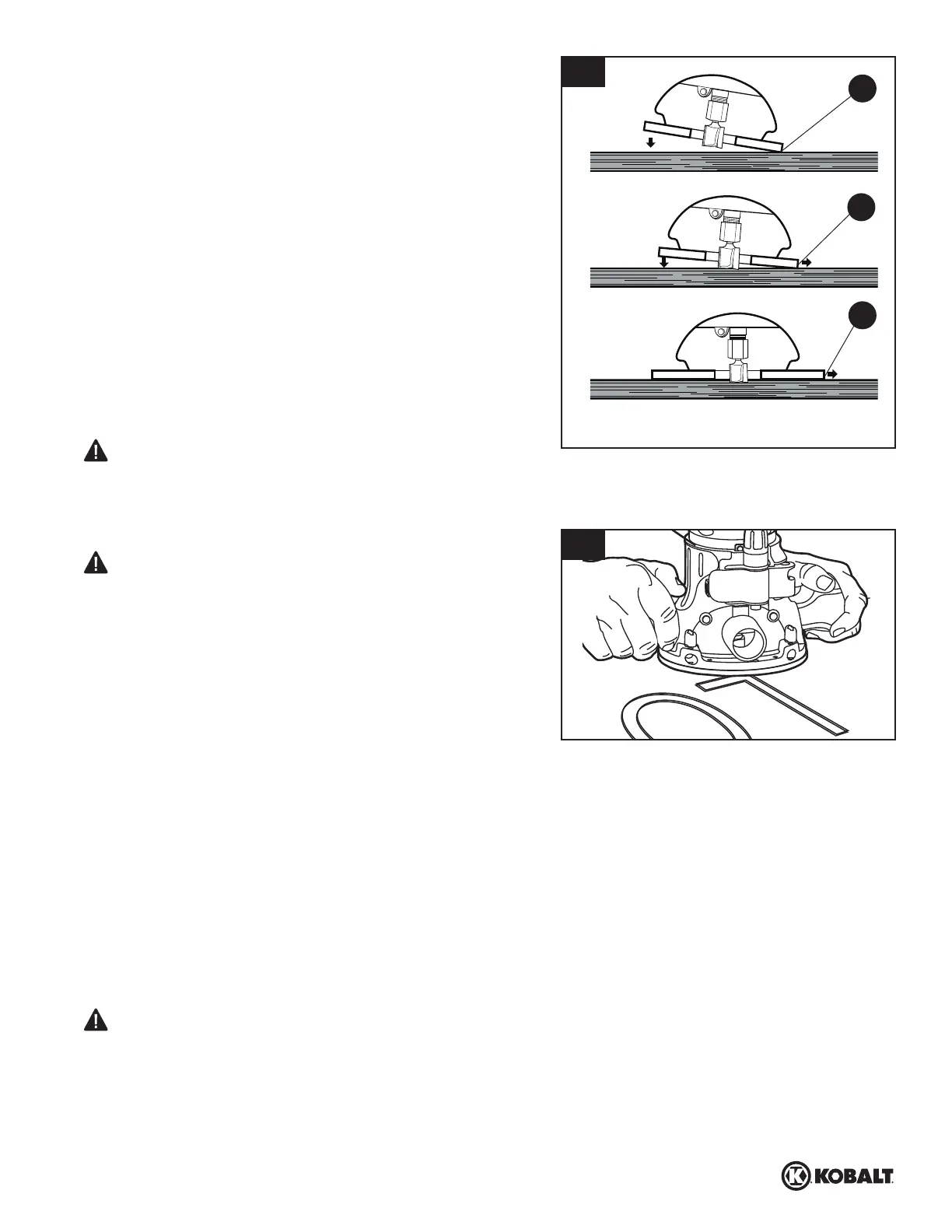 and keep a rm grip on the router base with both hands at all times.