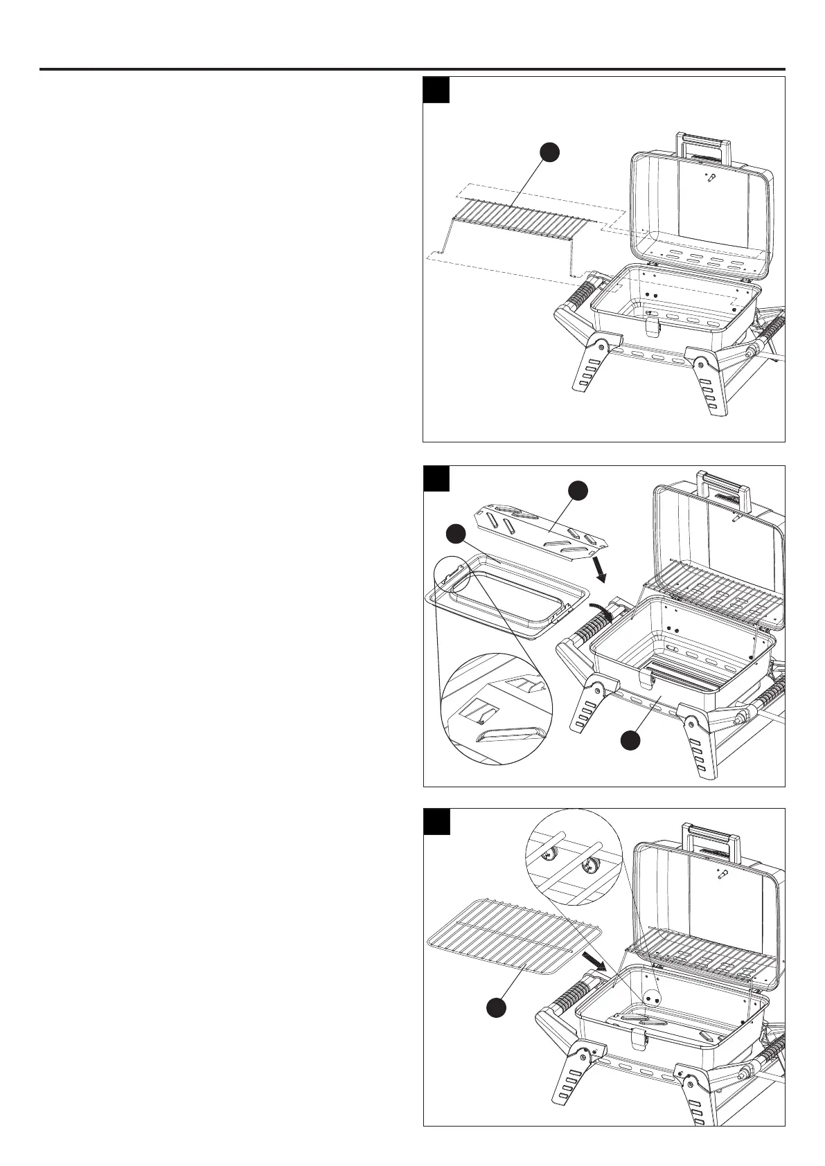 Put the charcoal grid (J) into place.