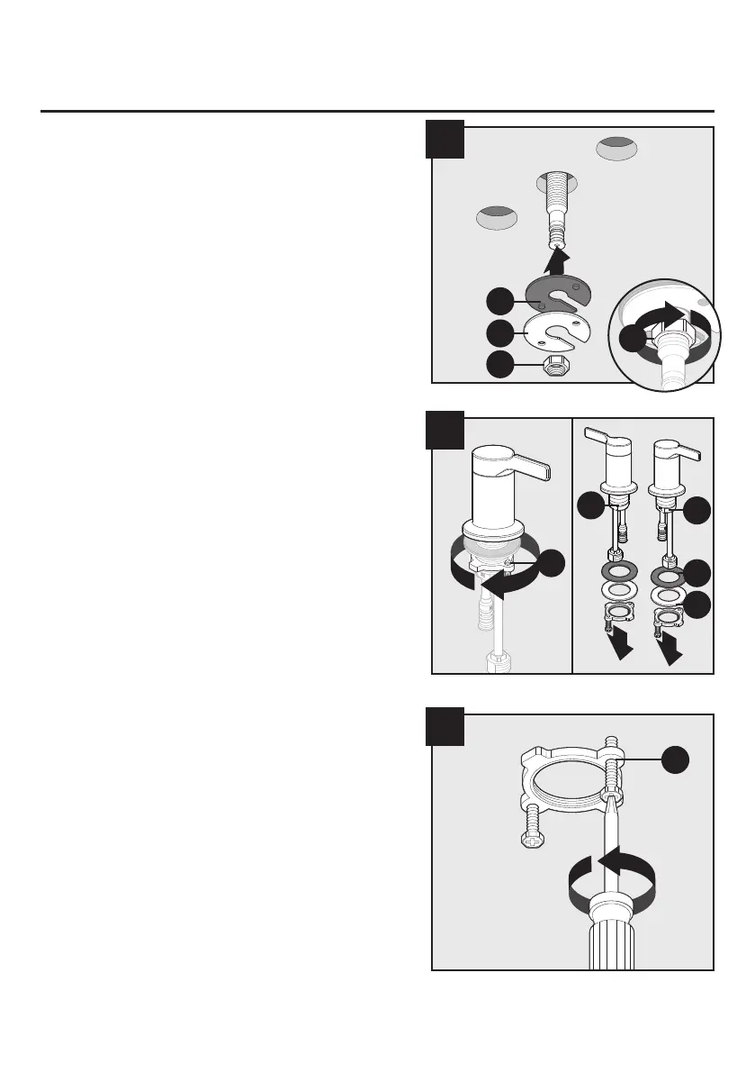4. From underneath sink, replace rubber spacer (E)