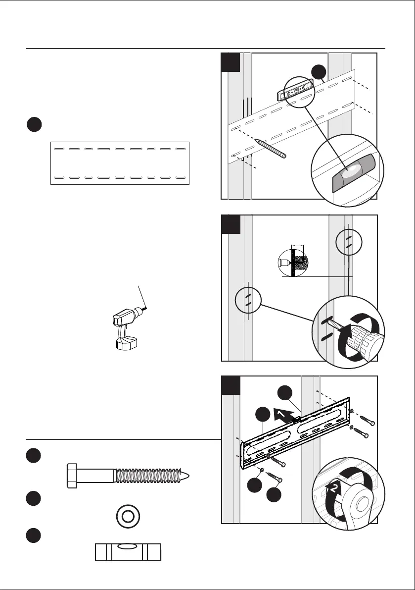 6. Fix the wall plate (A) to the wall with four M8 lag