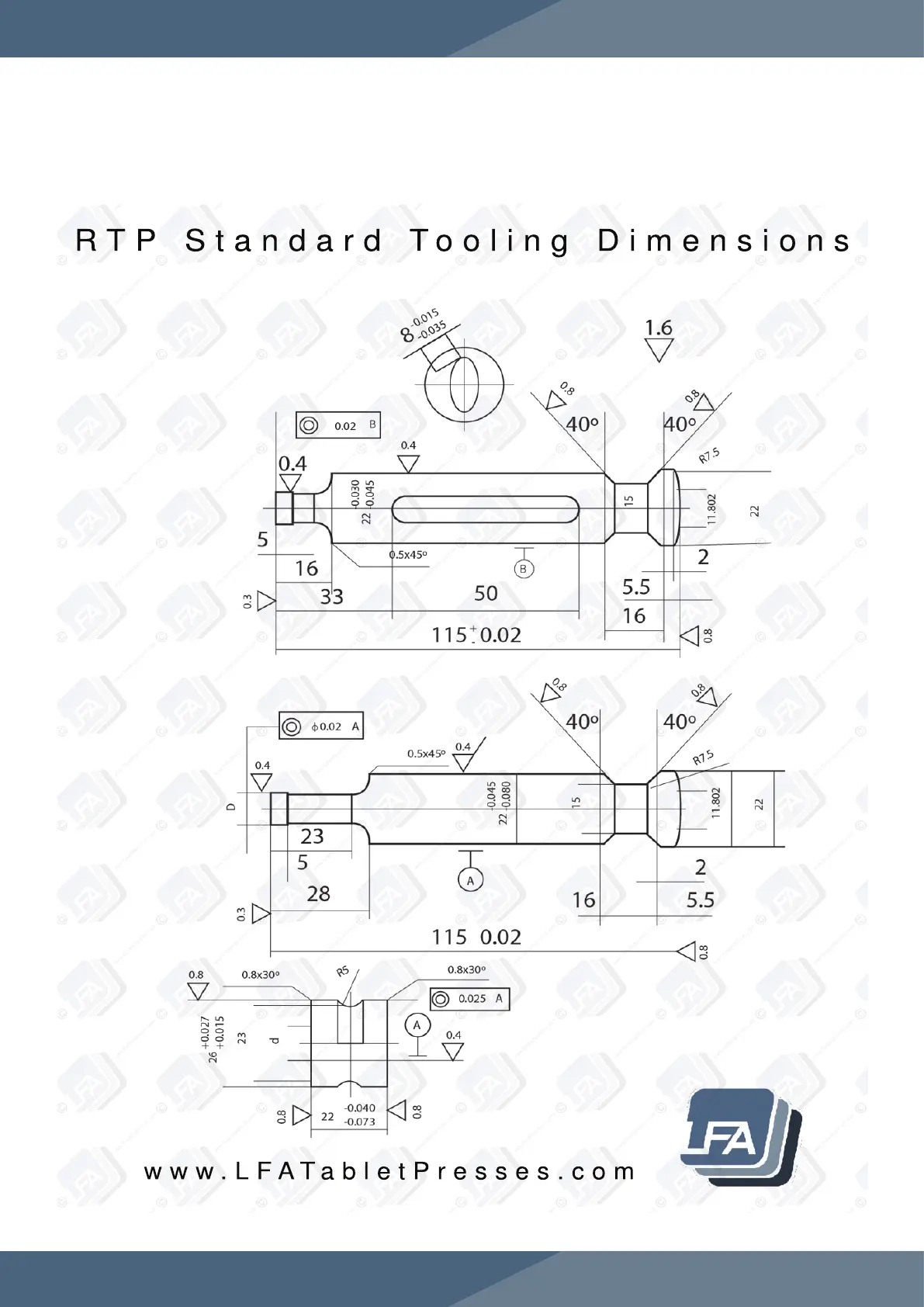 R T P S t a n d a r d T o o l i n g D i m e n s i o n s