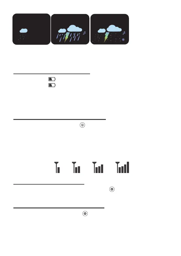 • Low battery icon by outdoor humidity, replace batteries in the sensor.