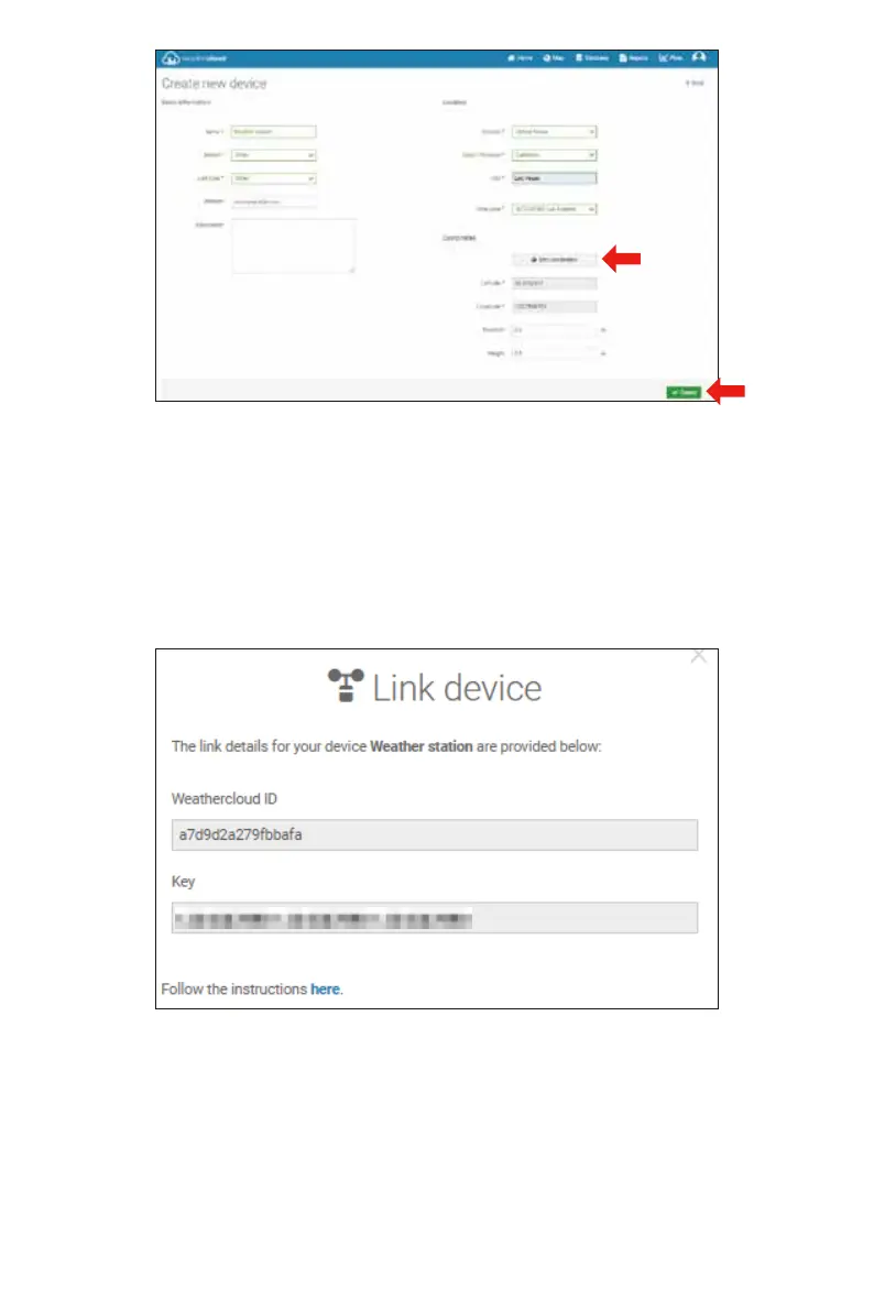 After registering successfully, please record your Weathercloud ID and Key information