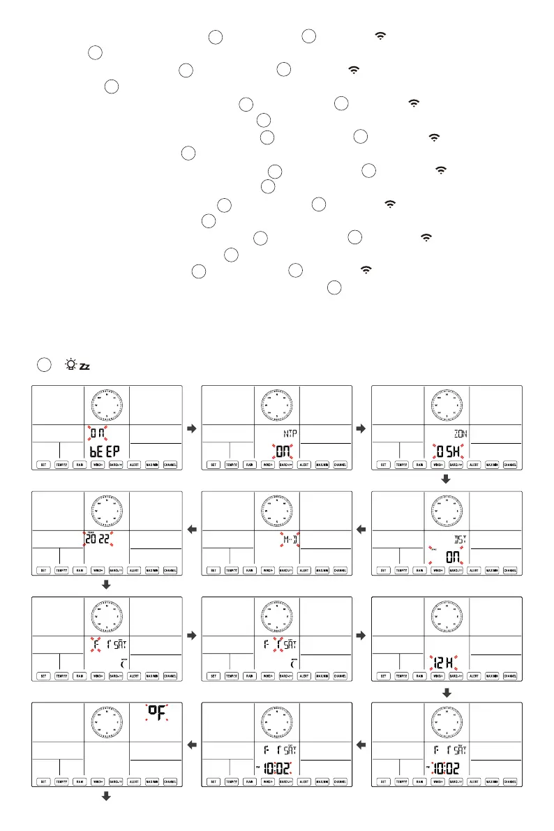When minute flashes, press 【WIND/+】 or 【BARO/-/ 】 to adjust the minute.