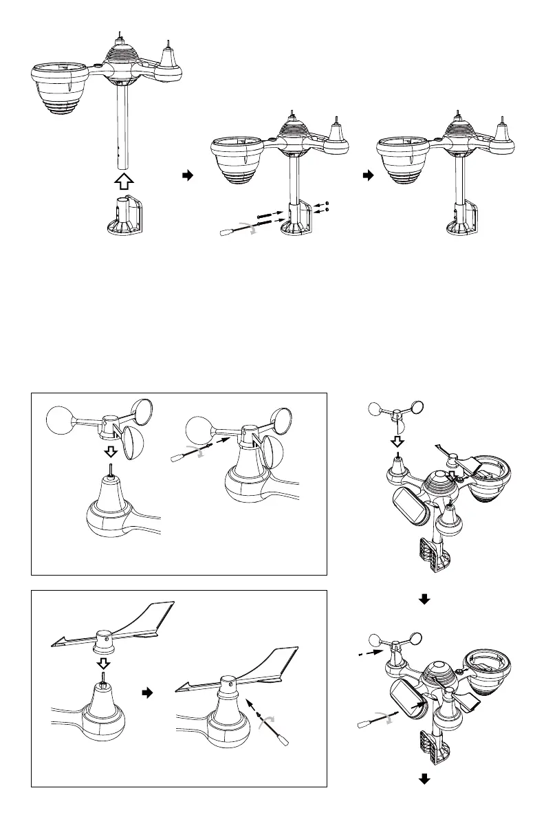 Insert the wind speed cups in the metal rod and screw on tight to lock it in place.