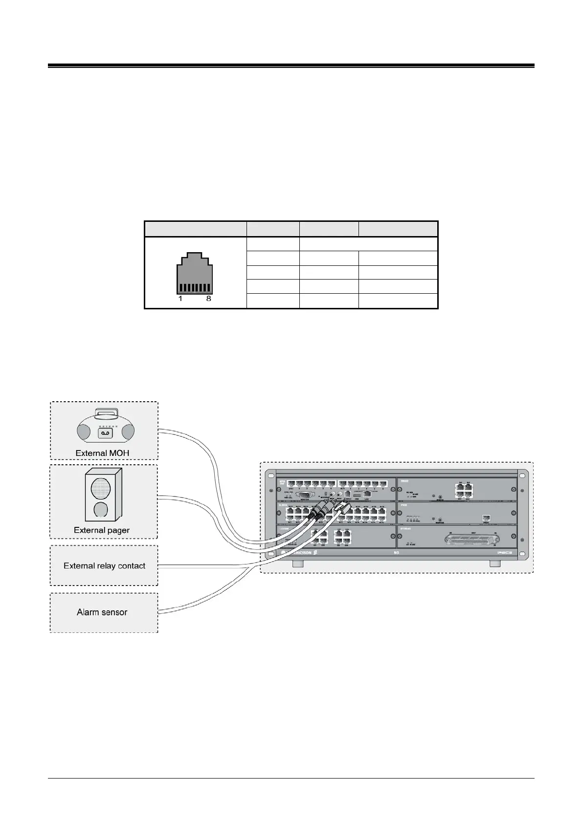 The MPB provides connections for an external music source, an external page port, a relay contact,