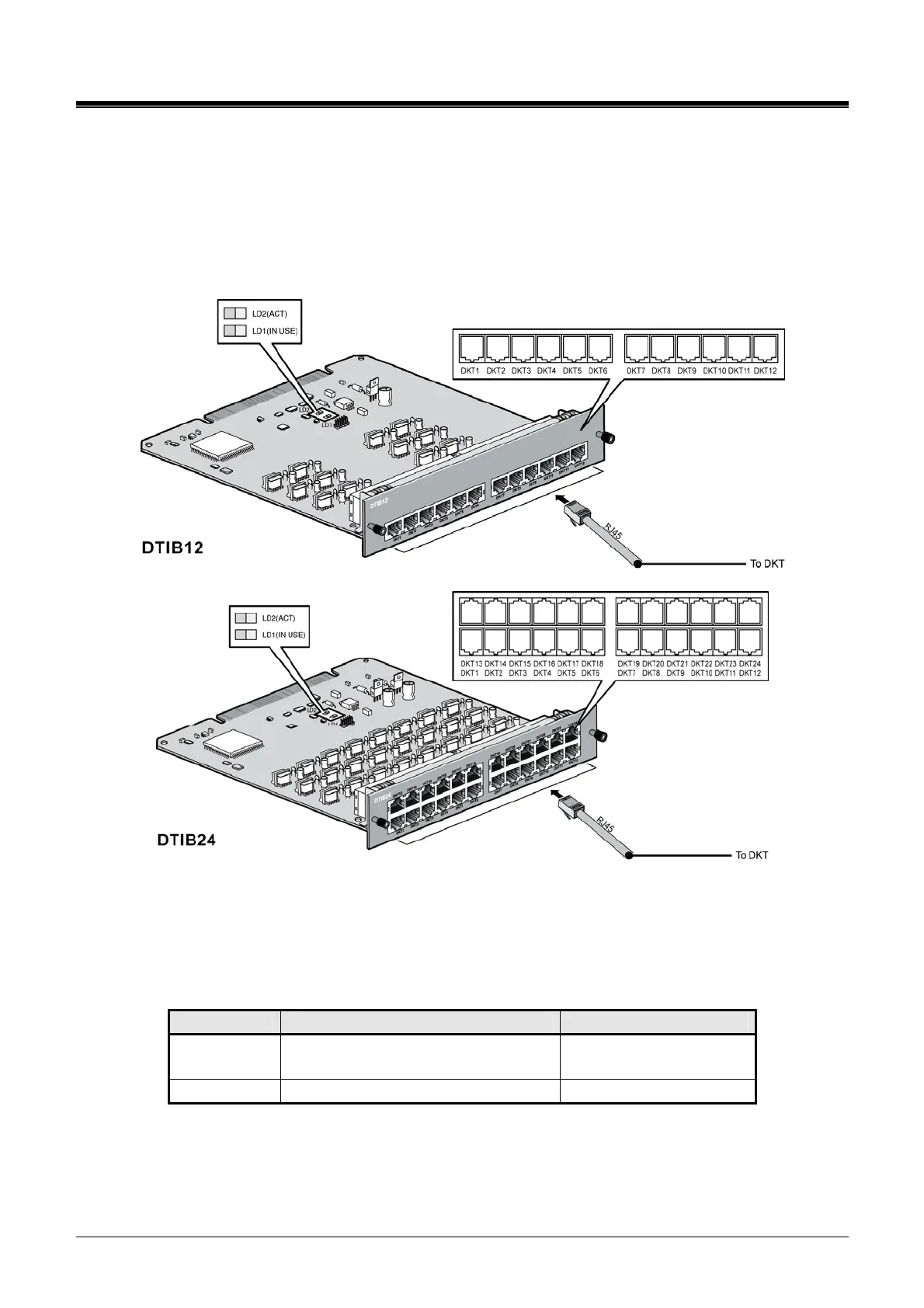 and the DTIB24 with 24 DKT ports. Each port provides power and signaling to the DKT over a single