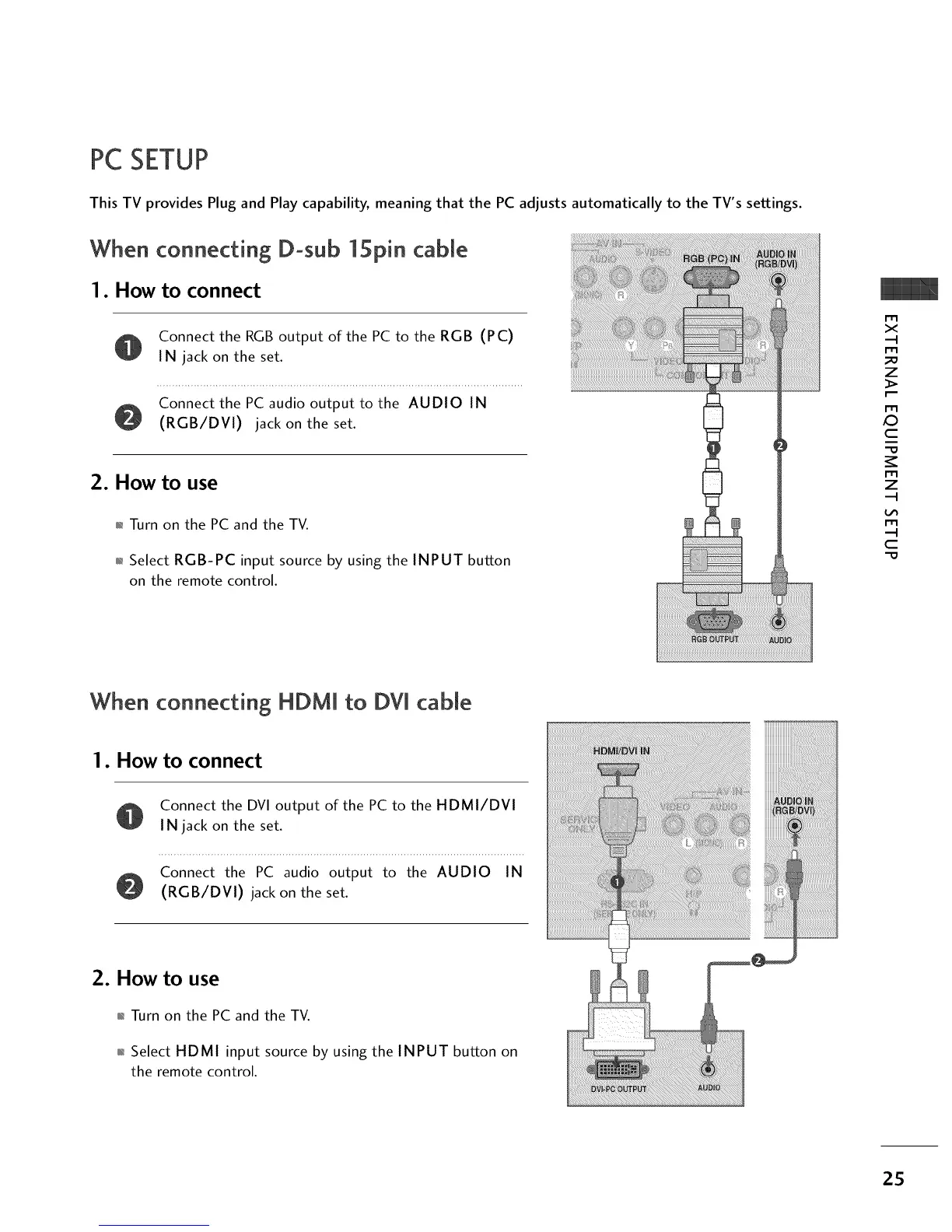 This TV provides Plug and Play capability, meaning that the PC adjusts automatically to the TV's settings.