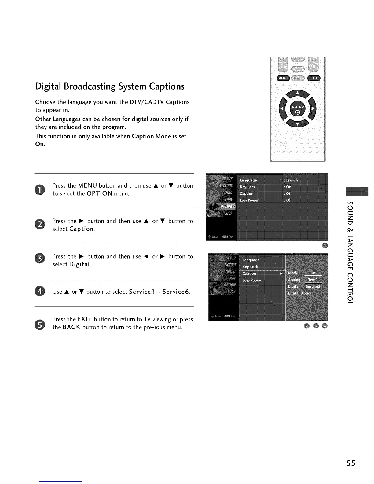 Choose the language you want the DTV/CADTV Captions