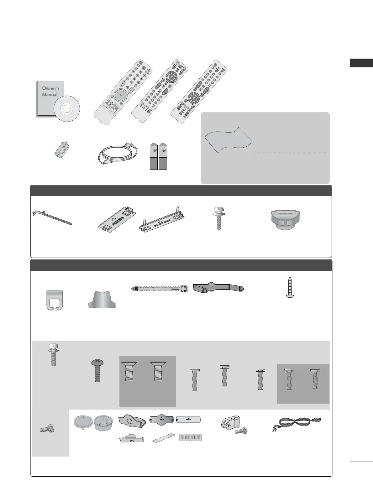 Ensure that the following accessories are included with your TV. If an accessory is missing, please contact