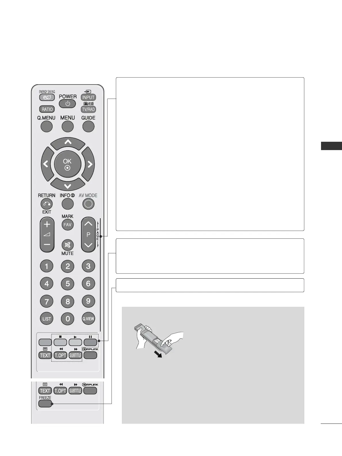 Pause the present picture at the screen.(Plasma TV only)