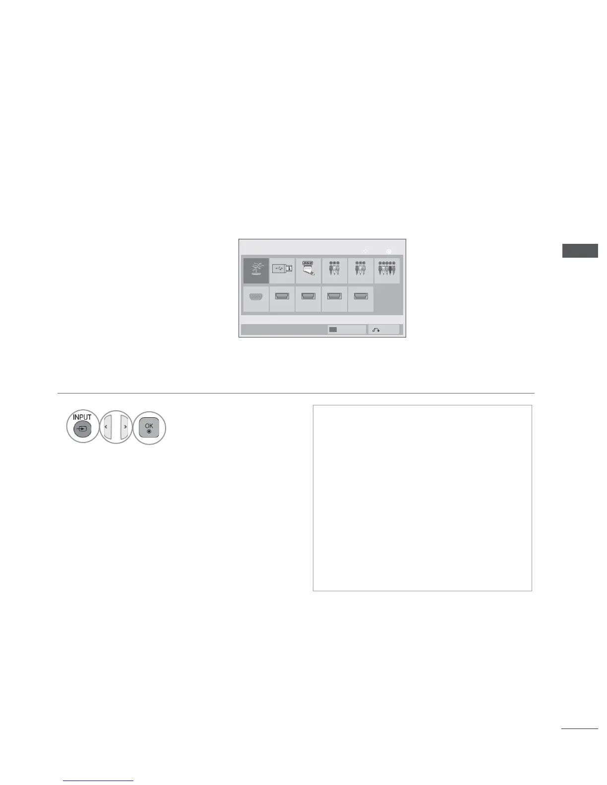By using TV/RAD button, you can move from External Input to RF Input and to the last watched pro-