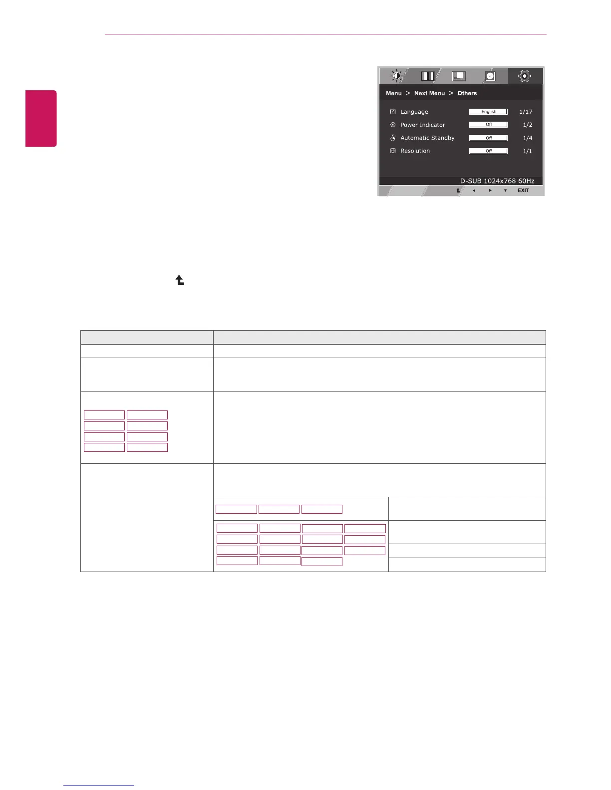 PowerIndicator UsethisfunctiontosetthepowerindicatoronthebottomsideofthemonitortoOn