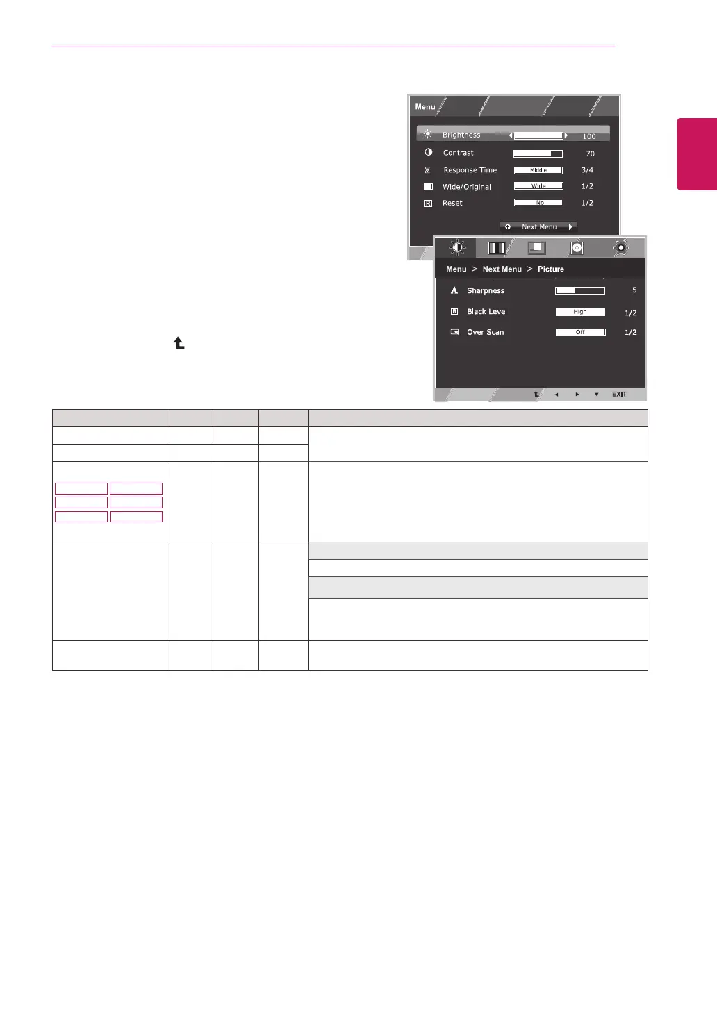 To return to the upper menu or set other menu items,
