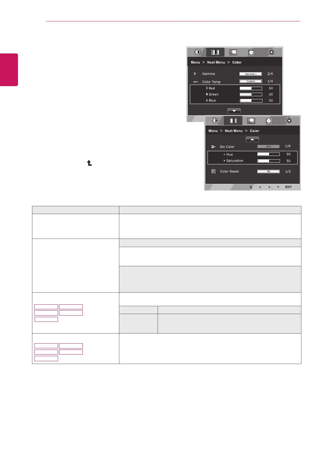 Gamma Set your own gamma value. : Gamma 0, Gamma 1, Gamma 2, Off on
