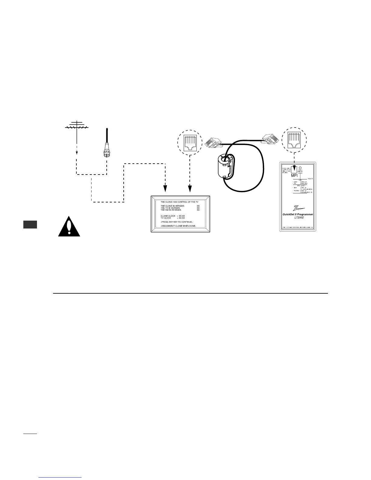 (THE CLONE HAS CONTROL OF THE TV) menu is displayed on the TV screen, the clone programmer LED is blinking the required heart
