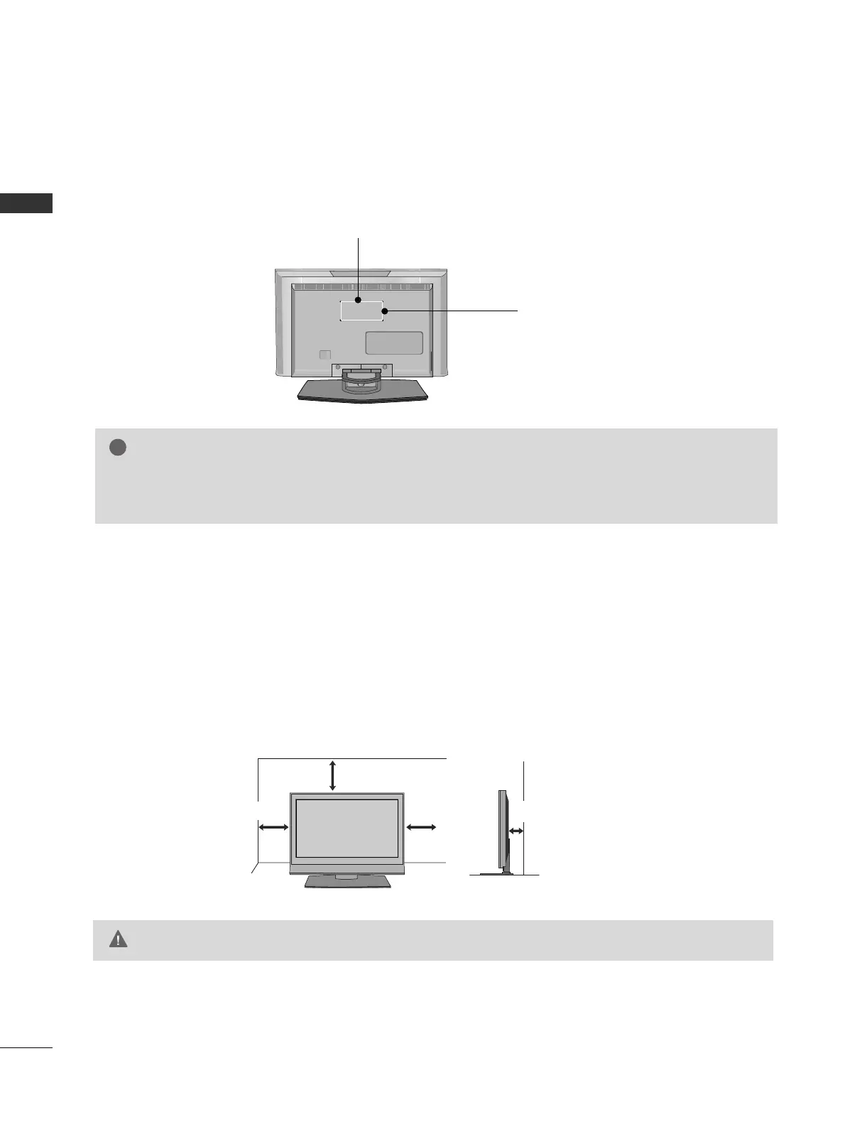 For proper ventilation, allow a clearance of 4inches on all four sides from the wall.