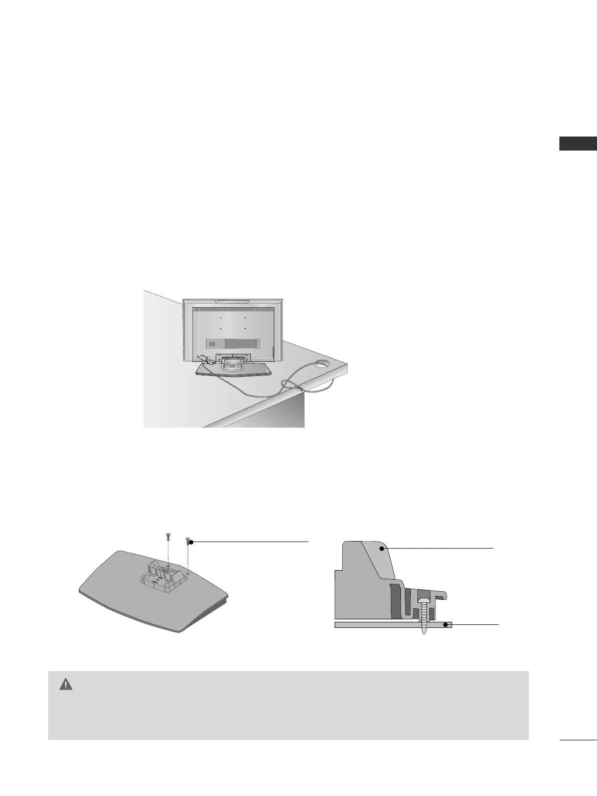 The TV must be attached to a desk so it cannot be pulled in a forward/backward direction, potentially causing