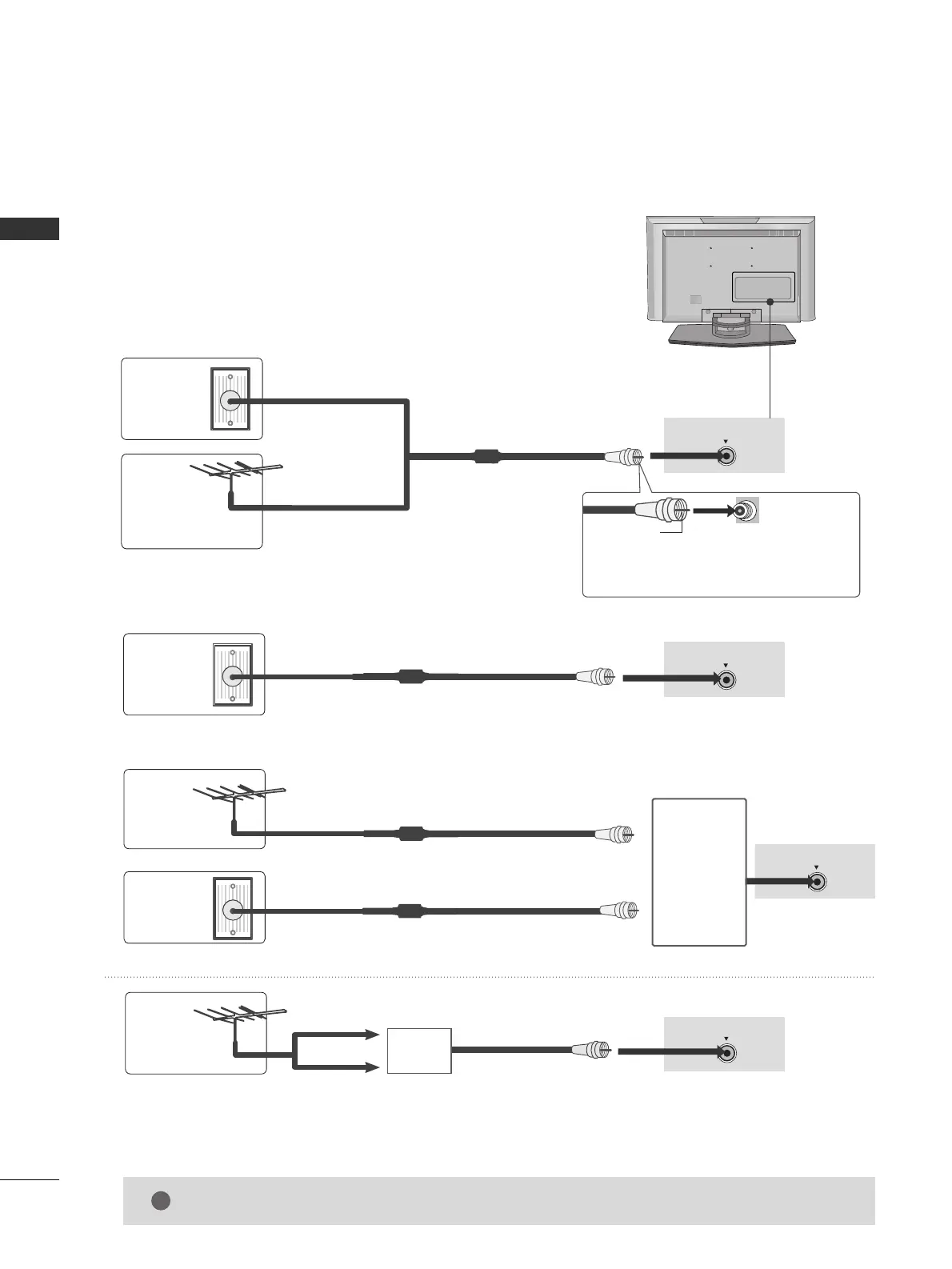 If the antenna needs to be split for two TV’s, install a 2-Way Signal Splitter.