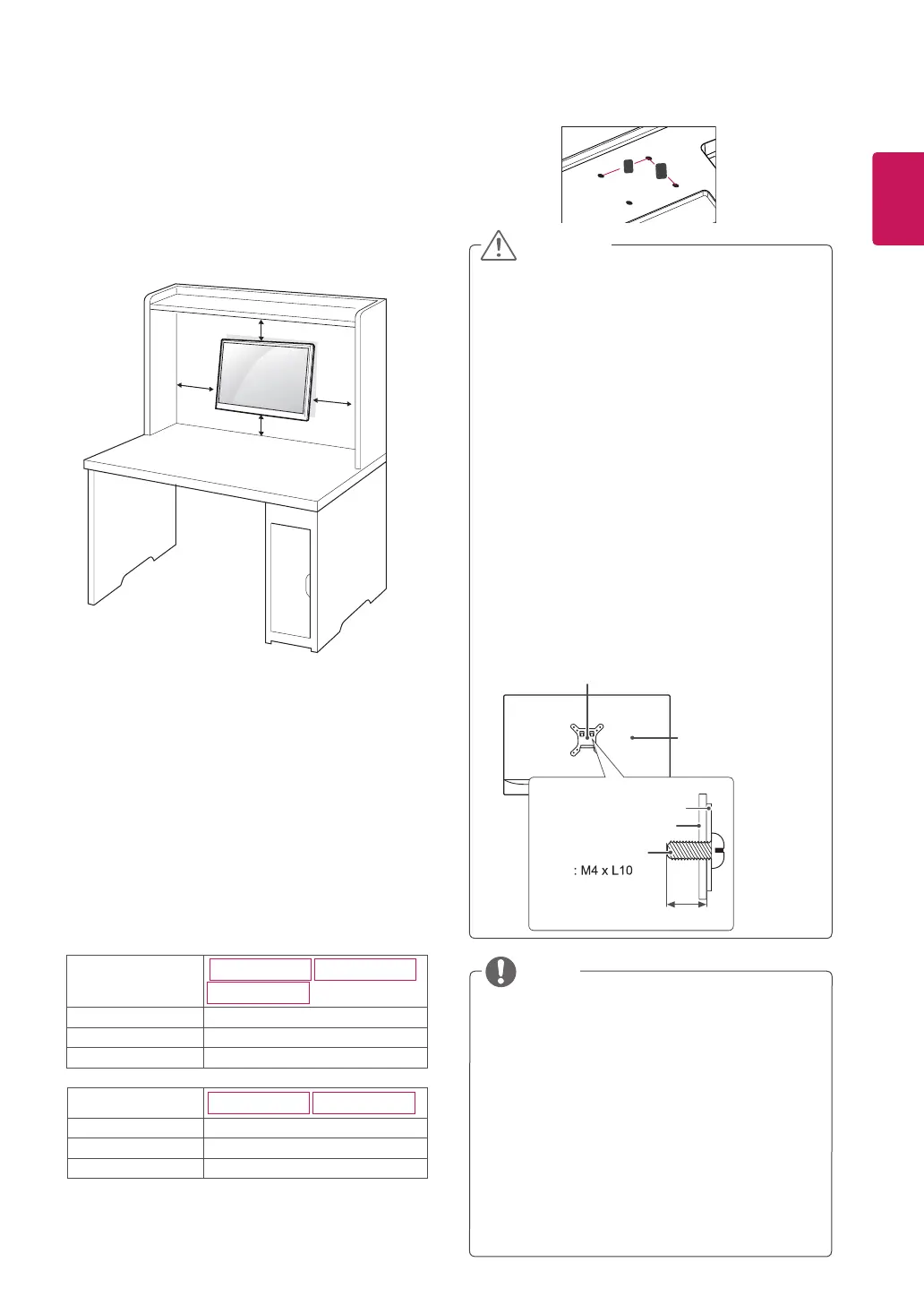 1 If you use screw longer than standard, the monitor