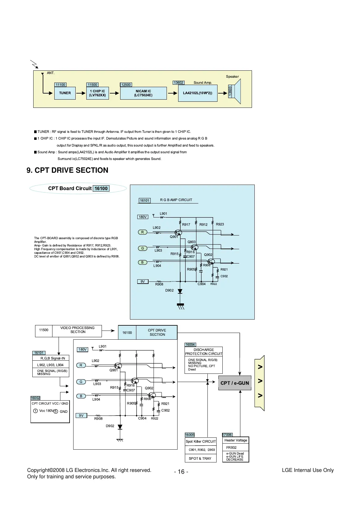TUNER : RF signal is feed to TUNER through Antenna. IF output from Tuner is then given to 1 CHIP IC.