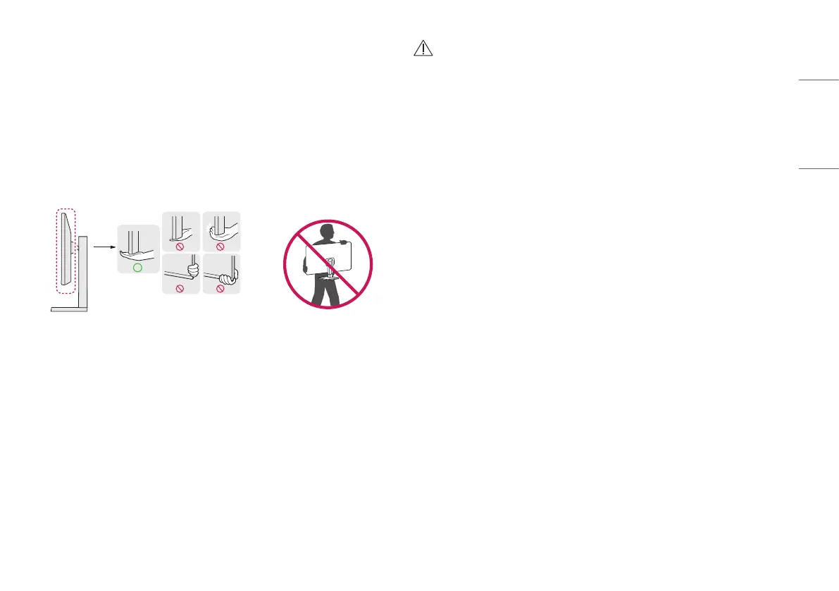 • Hold the bottom and side of the monitor frame firmly. Do not hold the panel itself.