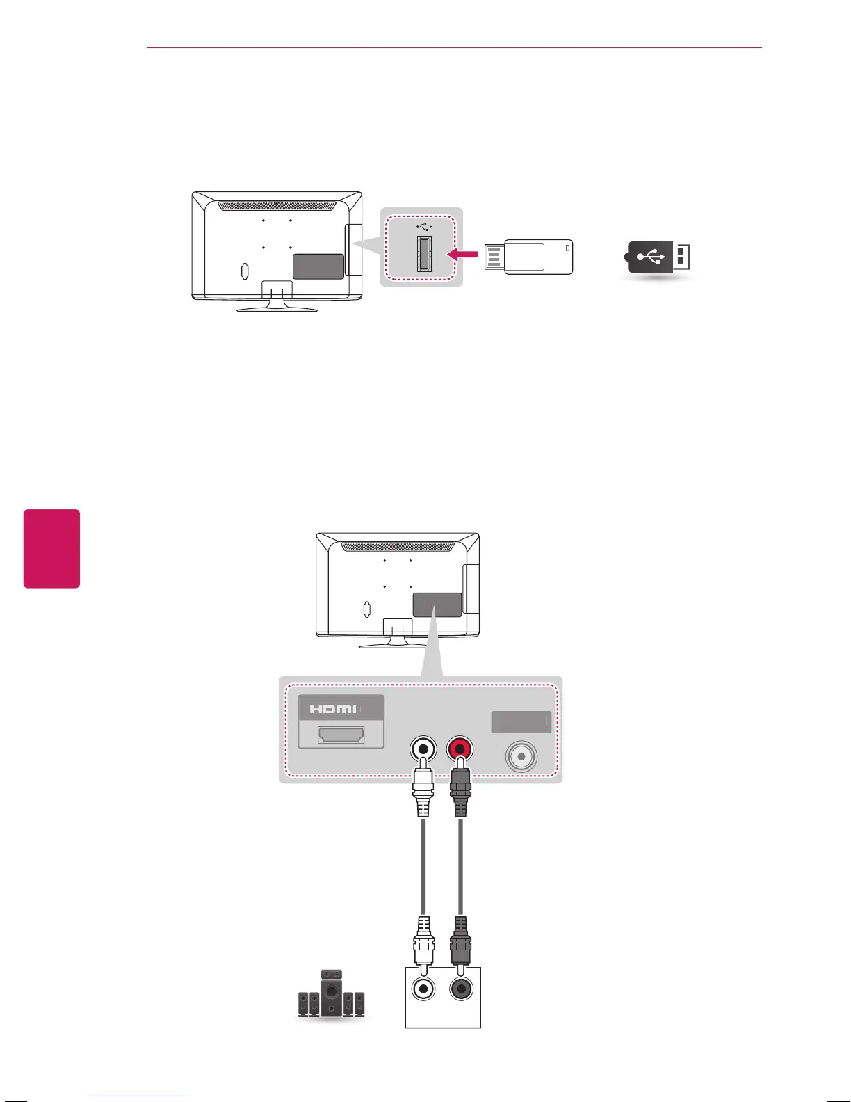 LG 22CS410 - Connecting to a USB; Connecting to an Audio System; External Stereo Connection