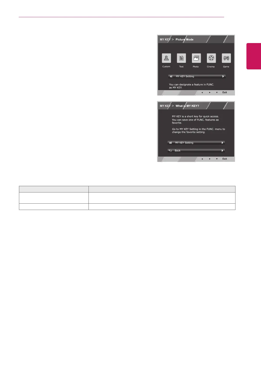 set to display the MY KEY OSD.