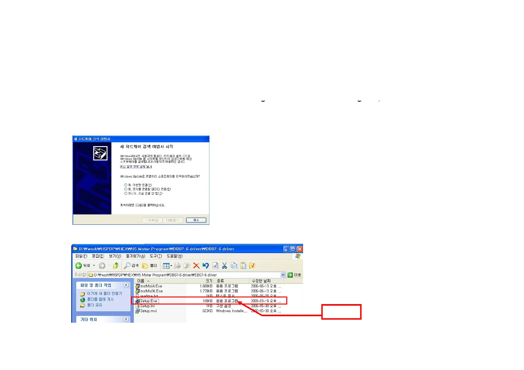 4. Execute Setup.exe in DB07-6 driver directory.(The location of directory can be different.)
