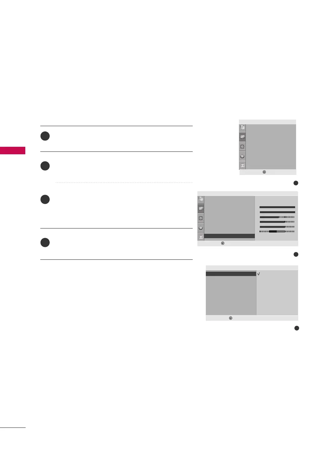 To reset to the factory default screen after making adjustments to each video mode, execute the “Picture