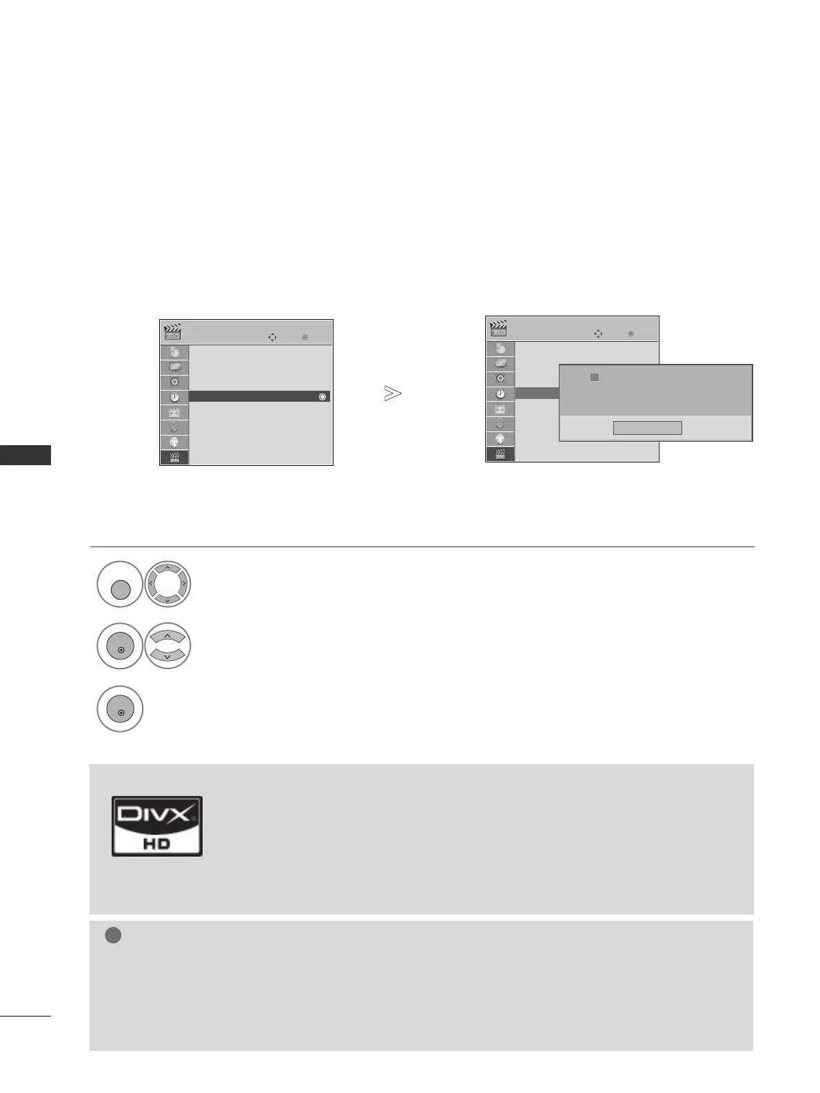 With a DivX registration code from other TV, playback of rented or purchased DivX file is not allowed. (Only DivX