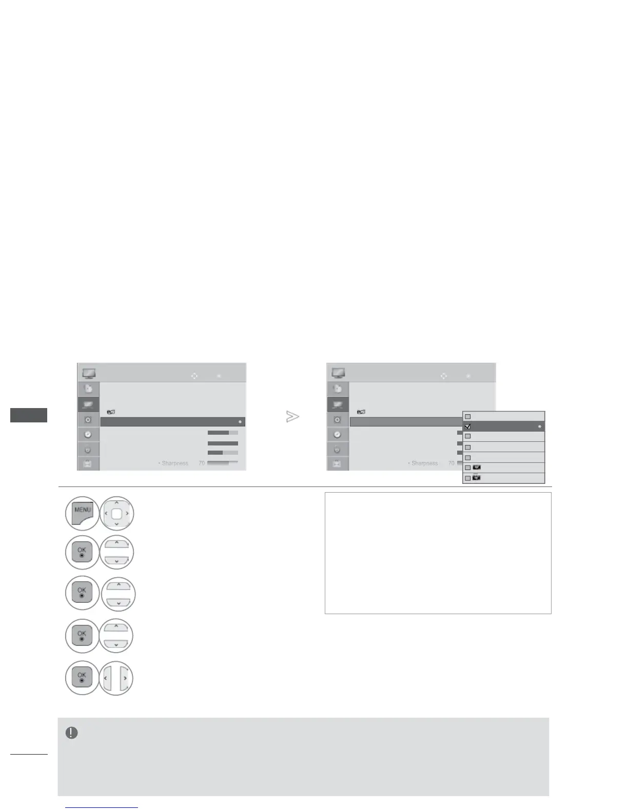 ► You cannot adjust colour, sharpness and tint in the RGB-PC/HDMI-PC mode.