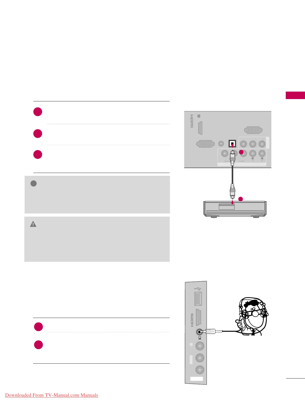 If you want to enjoy digital broadcasting through 5.1-channel speakers, connect the OPTICAL DIGITAL