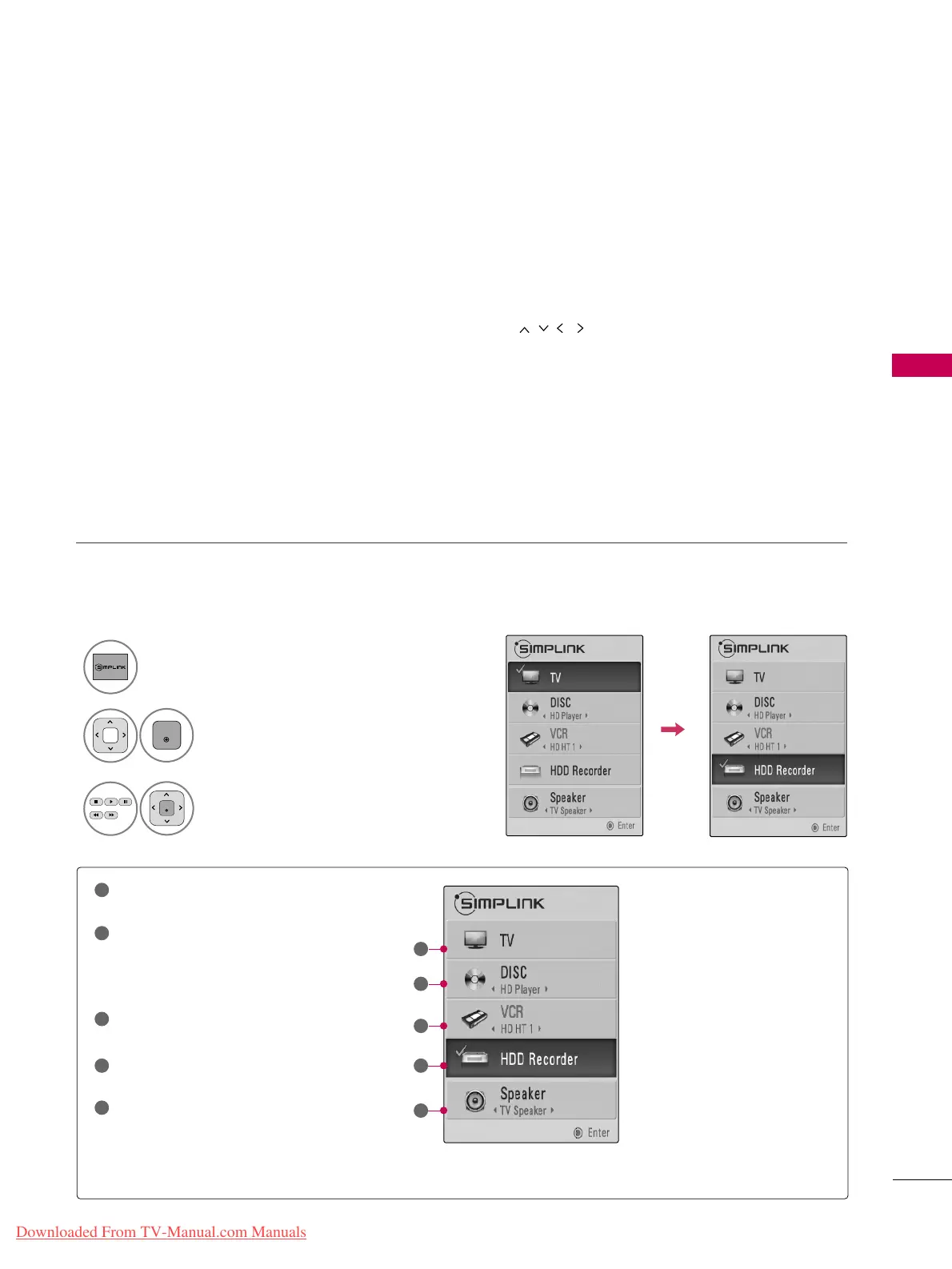 (A device, which is connected to the TV through a HDMI cable but does not support SIMPLINK, does not provide
