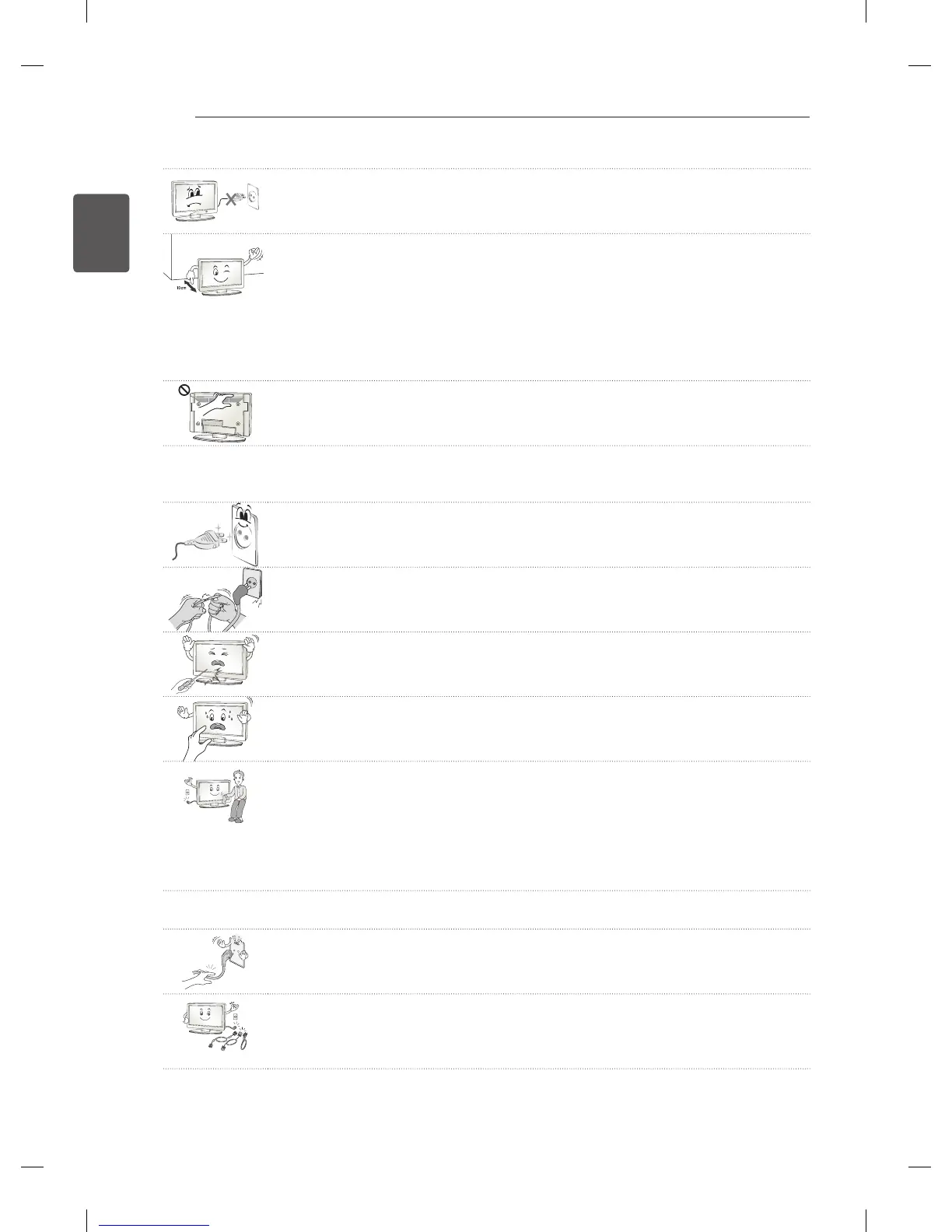 Otherwise, this may result in fire, electric shock or product damage (deformation,
