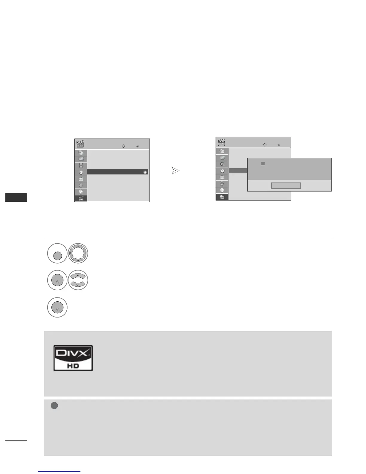 With a DivX registration code from other TV, playback of rented or purchased DivX file is not allowed. (Only DivX