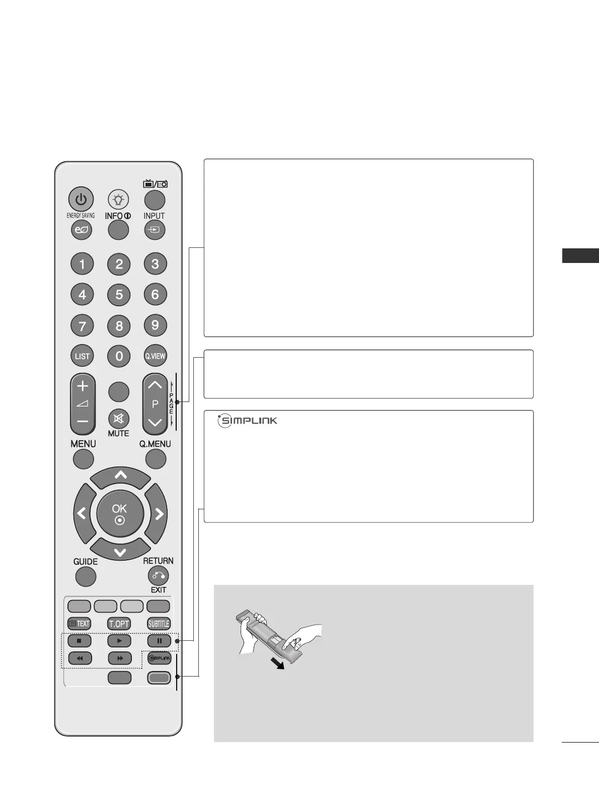 Controls SIMPLINK or USB menu(Photo List and Music