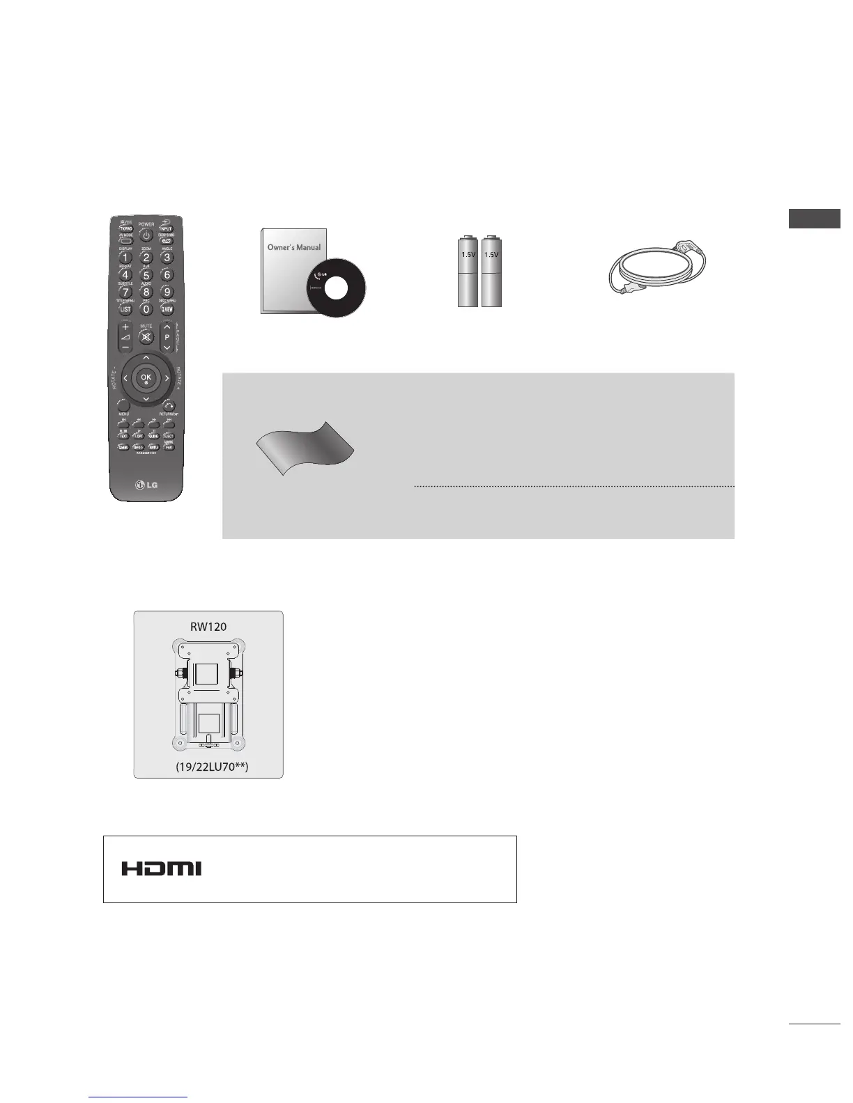 Ensure that the following accessories are included with your TV. If an accessory is missing, please contact the dealer where you