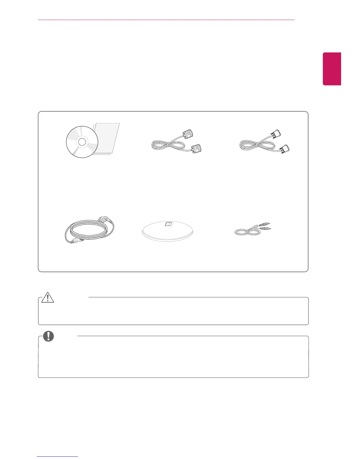 Check your product box for the following items. If there are any missing accessories, contact the local
