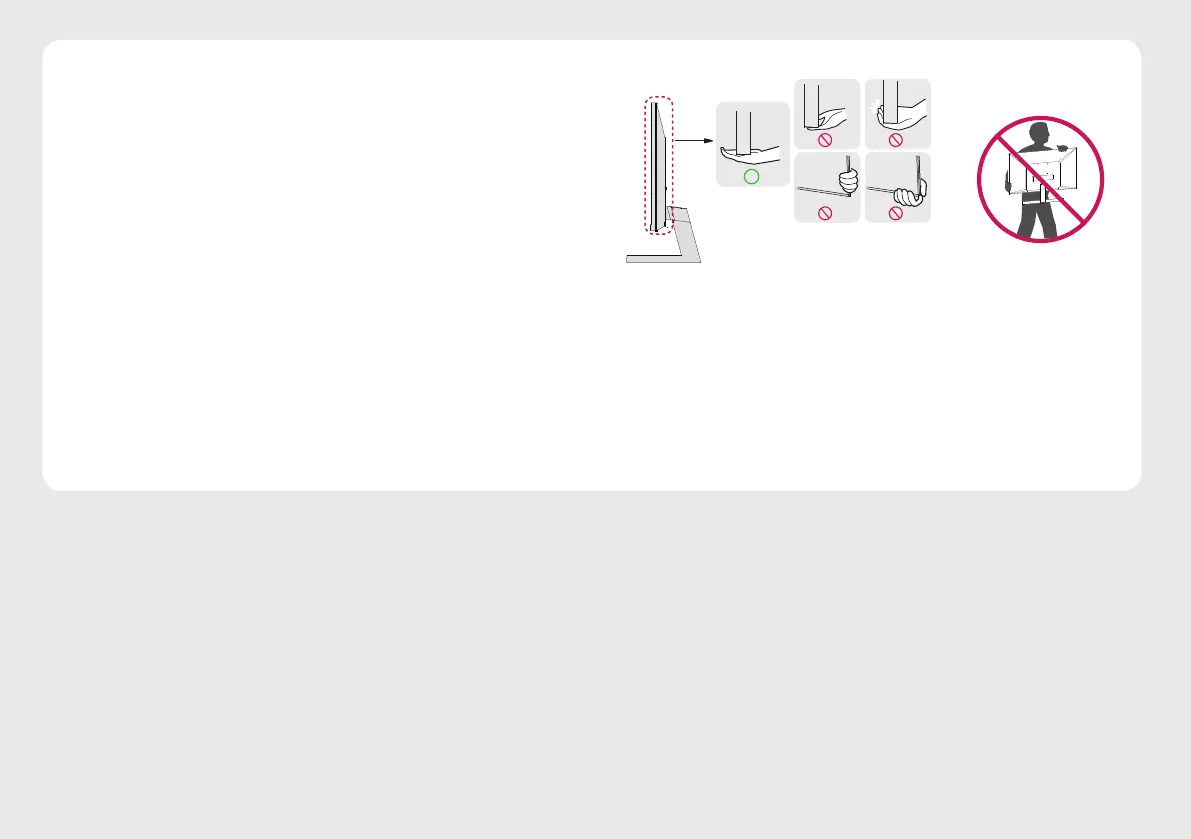 • Hold the bottom and side of the monitor frame rmly. Do not hold the panel itself.