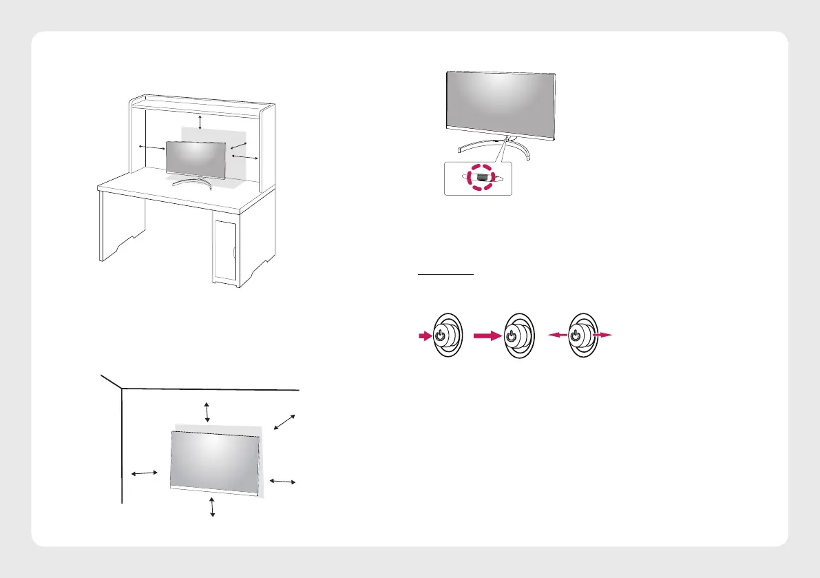 Install the monitor at least 100 mm away from the wall and leave about 100 mm of space at each side of the