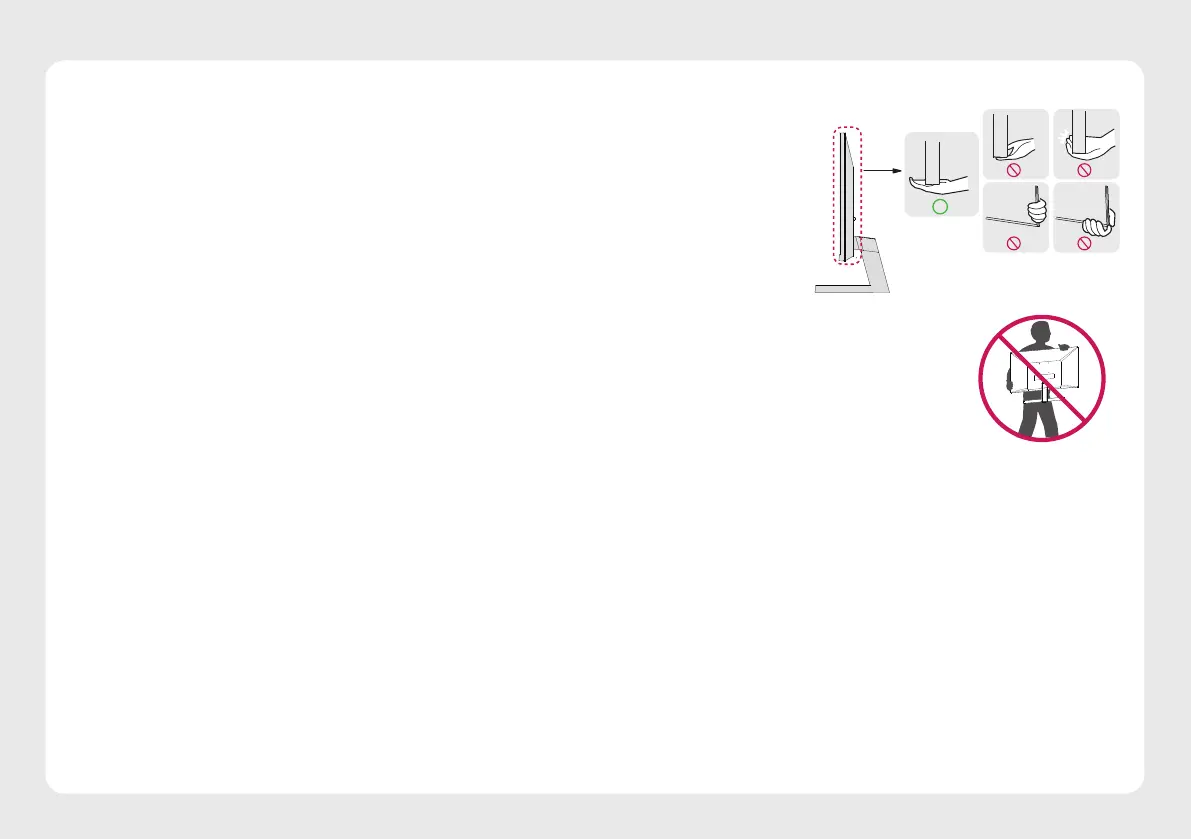 ေမာ္နီတာကို ကိုင္တြယ္သည့္အခါ စကရင္အား ထိခိုက္ပ်က္စီးမႈမရွိေစရန္ အျခားတစ္ဖက္သို႔လွည့္၍