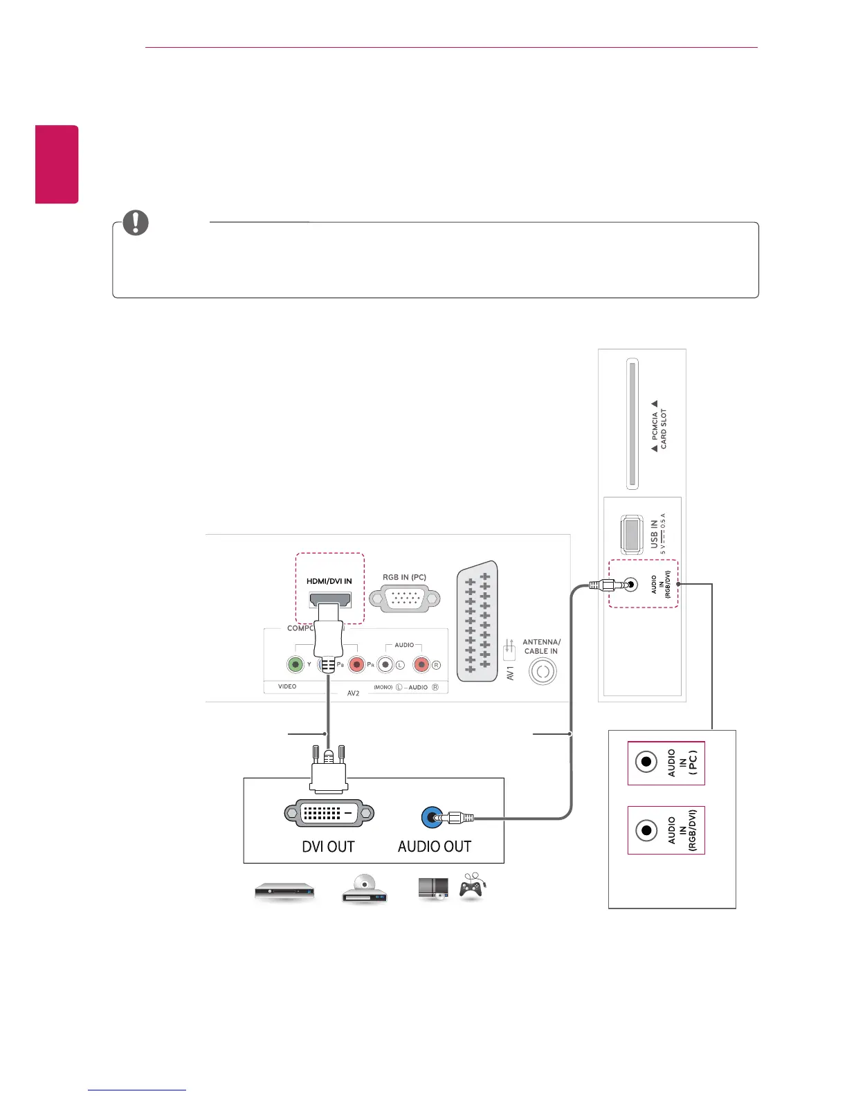 If you do not use an optional external speaker, connect the external device to the TV with the optional