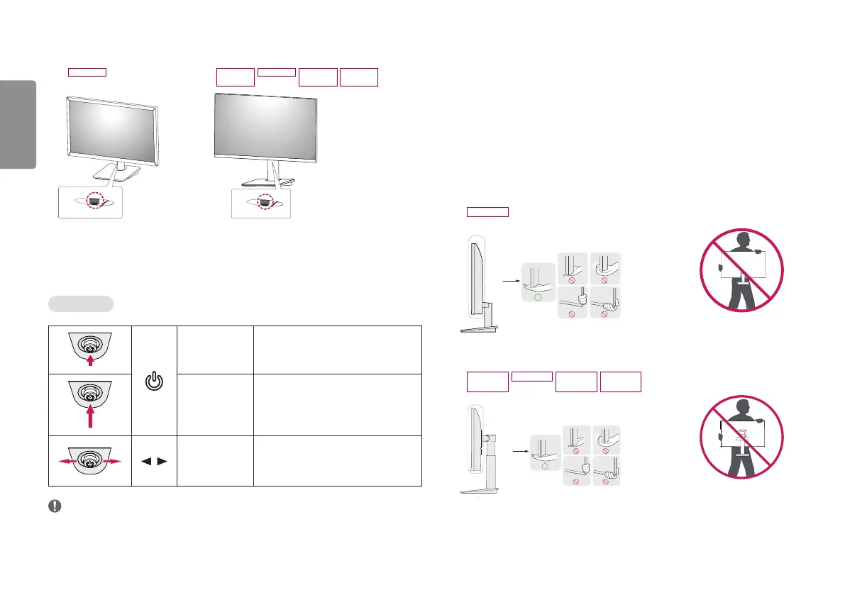• Hold the bottom and side of the monitor frame firmly. Do not hold the panel itself.