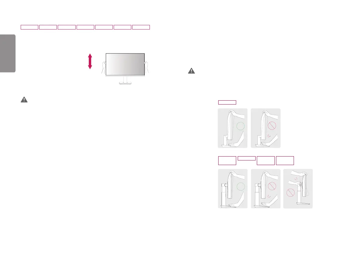 • When adjusting the screen height, do not place your hand on the stand body to avoid injury to your fingers.
